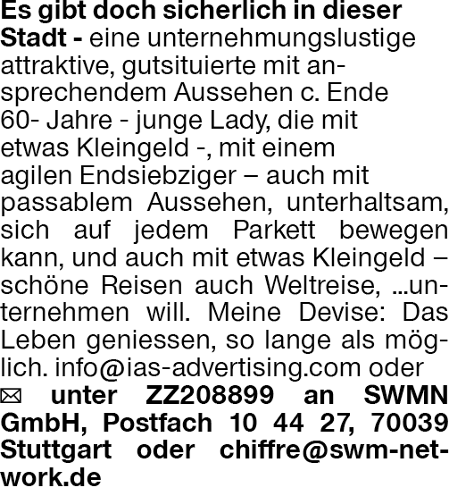 Erscheinungsdatum: Anzeige vom 4.10.2025 in der Rubrik "Bekanntschaften Er sucht Sie"
