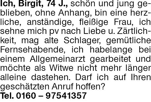 Anzeige vom 14.1.2026 in der Rubrik "Bekanntschaften Sie sucht Ihn"
